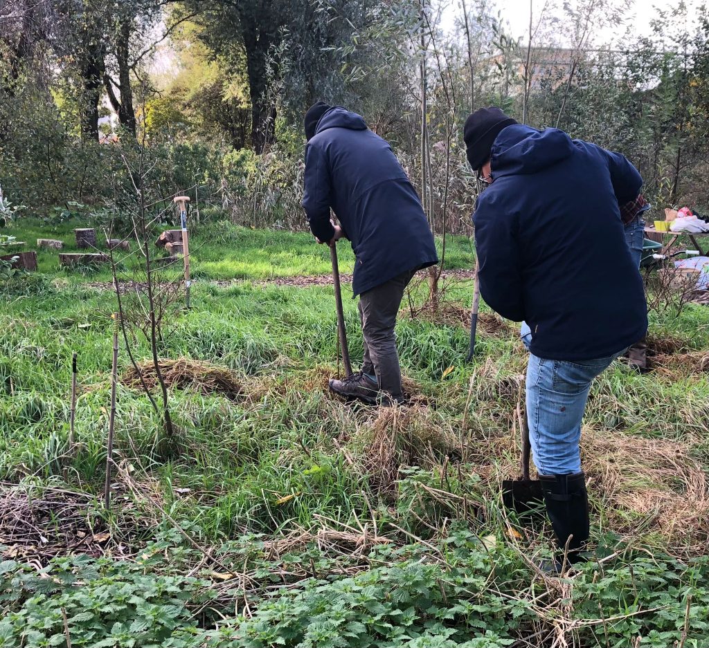 Wat een onverwacht mooie WOO! (Werk en Oogst Ochtend) in Okkerheide. Vertrouwde gezichten, maar ook veel nieuwe. Met wel 25 liefhebbers hard en gezellig gewerkt. Hekje hersteld, plantgaten gemaakt, bollen en knollen geplant (knoflook, aardperen, bloembollen), bosaardbeien en Japanse gember.